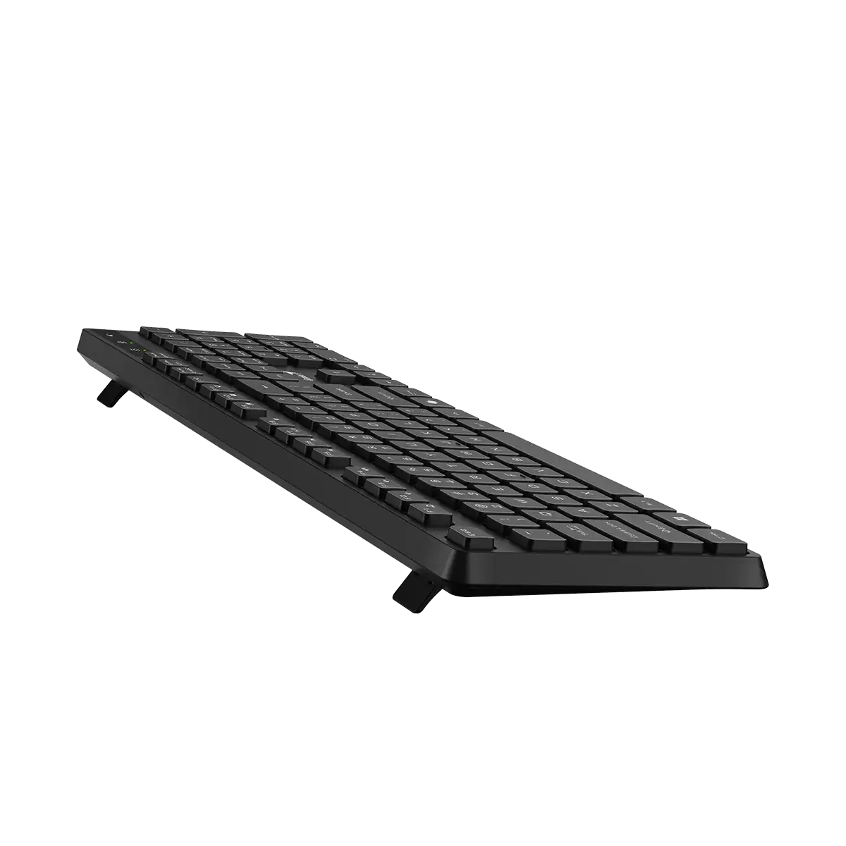 El teclado completo en tamaño compactoahorra espacio en el escritorio. Cuenta con teclado numérico, 11 teclas multimedia, indicador de baja bateria y plug & play sin la necesidad de instalar.